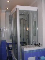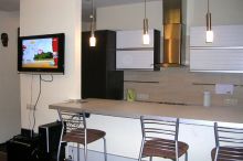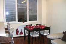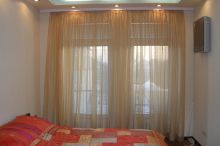 Two bedrooms VIP apartment in the center of Kiev. It is located at the corner of Kreschatik St. and Shevchenko Bul not far from Arena-city and Mandarin-plaza shopping malls. Apartment has amazing view from the window. There are two separate bedrooms with double beds and living room-studio divided by bar counter. There are bath+ shower cabin + steam box + hydromassage in adjacent lavatory made of Spanish glazed tile. There are home theater, two plasma TVs (digital TV), three air-conditioners, telephone, refrigerator, dishwashing and washing machines, Internet for additional payment.
