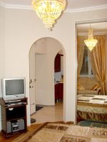 Description: Fully equipped perfect studio option in the very center of Kiev. Equipped with everything needed including a couch (convertible to single sleeper), full sized bed, 25" TV with Cable, High Speed Internet, AC an much more. Very nice accommodation in the center just seconds from Kreschatik Street. 2 entrances (1 from yard and 1 from the street). The Yard entrance has 24 hour security. Full description coming shortly.