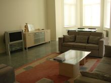 Two bedrooms apartment. Located in the center of Kiev(near restaraunt "FELINI" or cinema "Ukraina") at Nezavisimosti square, not far from Globus shopping mall. It is light, comfortable, cozy, and refurbished in compliance with European Standards. There are two separate bedrooms, so twobedrooms and very big living room. Very high windows are with view of Gorodetskogo street. At the balcony you may see beautiful panoramic view. The entrance is under guard. There is a video surveillance at your floor. In this apartment you may rest pleasingly and work easily.
